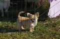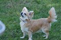 mkt feminim tik, fint uttryck, kunde ha aningen större ögon, bra över linje, välutvecklad kropp för åldern, välansatt svans, utm benstomme, goda bakbens vinklar, rör sig med bra attityd"