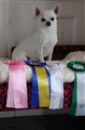 Titta vilka fina rosetter jag har fått på utställnigen i Malmby.Mali blev etta och Bir valp. Grattis Mali!