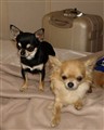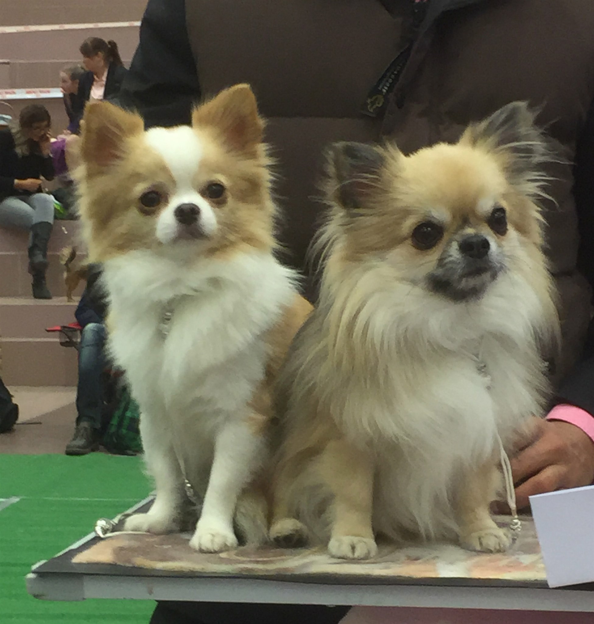 Lisa och Madame på utställning i Avesta, lyckohalsbandet är på.