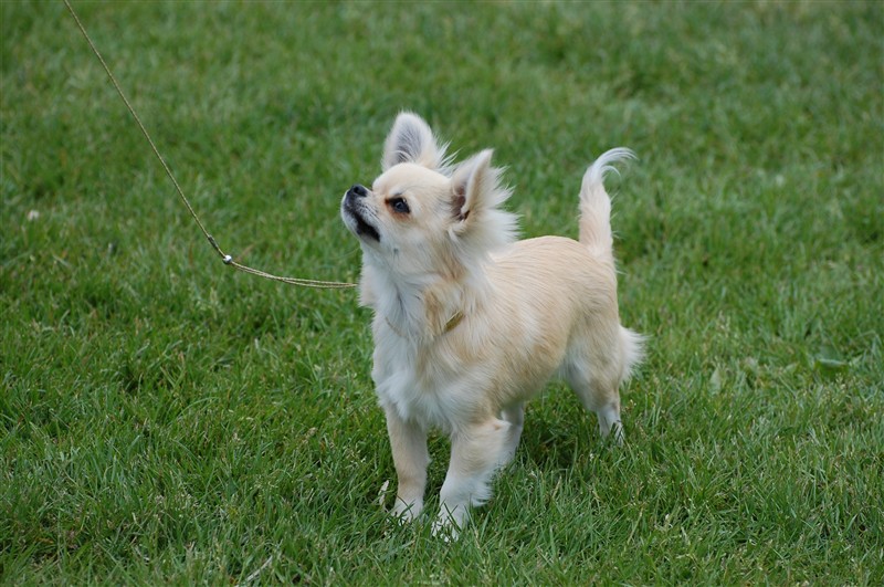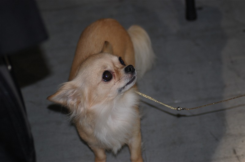"feminim tik, proportionerligt huvud, bra skalle, fina ögon, bra öron, korr över linje, bra svanssättning, passande benstomme, goda vinklar, tillräckligt proportionerlig, rör sig med god attityd, ngt lös i fronten, tillräcklig päls för dagen, trevlig helhet"