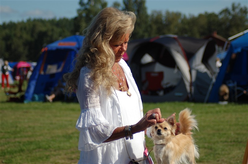 "Feminim tik av mycket god topkvalité. Vackert huvud, korrekt bett, fint uttryck och flott kropp. Härliga bakbens rörelser, korrekt svans, avsaknad av päls men tål det, tilltalande väsen. Väl presenterad" - Domare Lisbeth Campbell