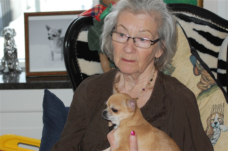 Sierra med sin nya ägare som vi mötte i Lidköping. Sierra mår bra och trivs utmärkt.